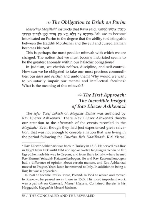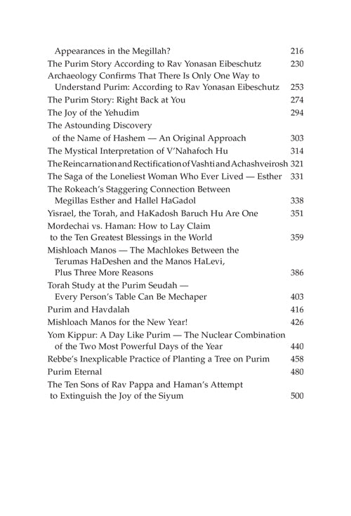 In The Concealed and The Revealed, we will discover how seminal events throughout history are predicted in the Megillah and the astounding significance of the unusual letter formations. How all of Haman’s plans boomeranged right back at him and how Achashveirosh actually helped finance the rebuilding of the second Beis Hamikdash. We will learn about Eliyahu HaNavi’s mysterious appearances in the Megillah and why only an orphan like Queen Esther was chosen for her role to bring salvation to the Jewish People. So much wisdom, so many breathtaking chiddushim: The Concealed and The Revealed is like a generous and beautiful mishloach manos basket to Klal Yisrael, filled with delicacies that will nourish our souls and immeasurably enrich our joy on Purim and throughout our lives.