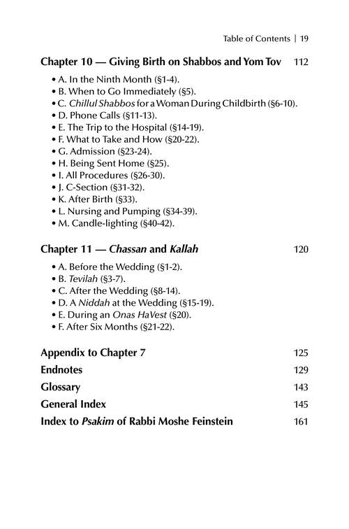 This volume also includes halachic guidance for a chassan and kallah, labor and childbirth, giving birth on Shabbos, as well as many medical procedures, and the comprehensive index will help readers find what they need to know in almost any circumstance. This book is also unique in that it cites virtually every practical ruling of Rabbi Moshe Feinstein.