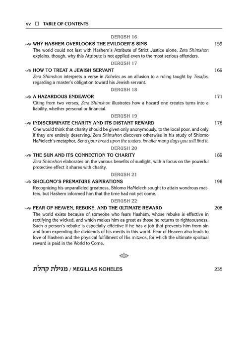 "...the person who learns the commentary, will sit at his table surrounded by his children and family; beautiful blessings, all given wholeheartedly to the person who studies this work. A house filled with everything good.... The blessings will begin in this world and carry on in the world to come..... “ from the author's Introduction to Zera Shimshon