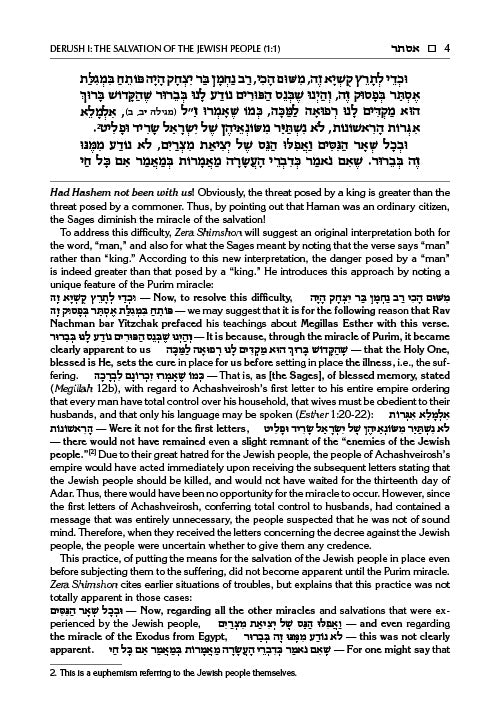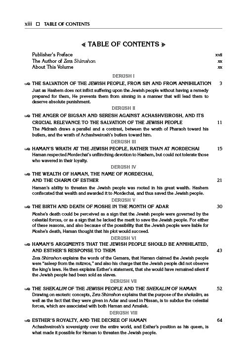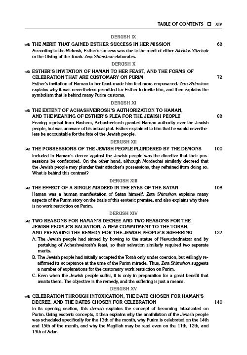 The full text of the Zera Shimshon's commentary on Megillas Esther, with an elucidated translation designed to help the reader follow the Zera Shimshon's often-complex ideas.