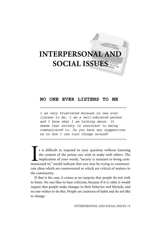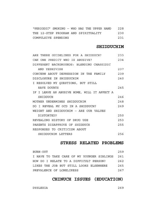 That day has come! Flip through the table of contents of this amazingly insightful book and find that your question has already been asked - and answered! Ever since Rabbi Twerski began writing his weekly question-and-answer column "Seeking Solutions," he has been flooded with thousands of letters. This book contains new letters and answers that have not been printed before, as well as some of the classic questions and solutions from his column. This book contains nearly 200 letters, reflecting real problems faced by real people.