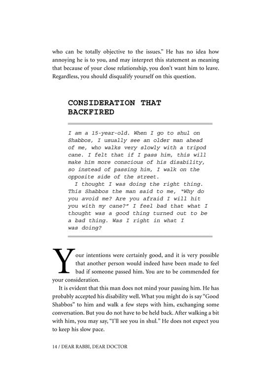 You deserve the peace of mind Dear Rabbi, Dear Doctor can bring. Rabbi Twerski's advice is always down-to-earth, rooted in Torah and drawn from his long experience as a nationally known mental health professional. He believes that every individual and every family is entitled to a happy, healthy outlook. As he says in his introduction, "A Jewish home should be an oasis of stability, decency, and righteousness in a toxic world." This book is an important step in that direction.