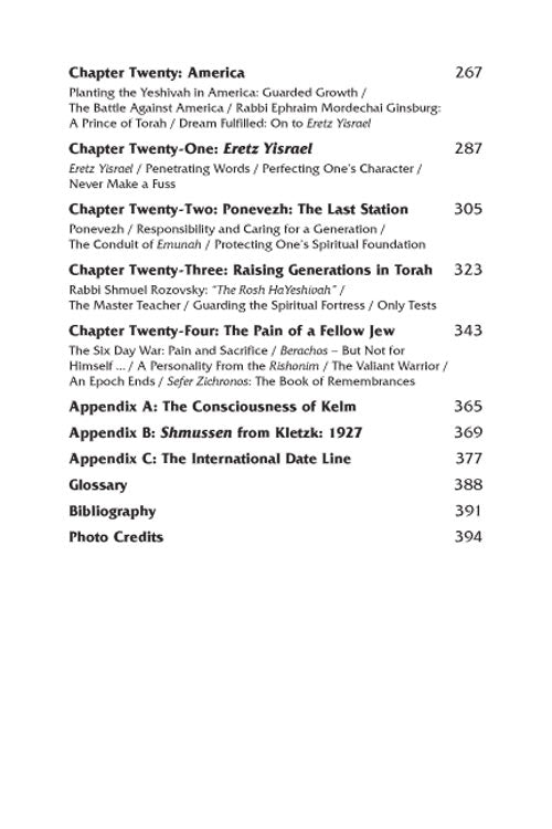 In this definitive biography, Rabbi Yitzchak Kasnett, brings us face to face with Reb Chatzkel. Years of research, scores of interviews, endless writing and review went into this work. And it shows. Reb Chatzkel¹s family and talmidim shared their memories, personal correspondence, and never-before-published photographs.