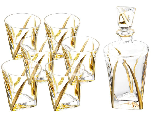 BT Shalom : Crystal Decanter with 6 Kiddush Cups- Geometric Design (Price Excludes VAT) - Retail O