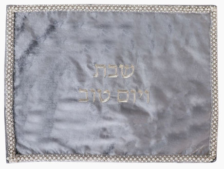 Challah Cover Silver Satin With Shabbat Images 66x55.9cm