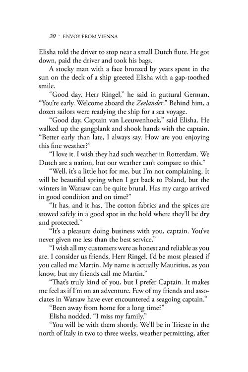 After a harrowing encounter with pirates at sea, Elisha Ringel travels to Vienna for the wedding of Mendele Strasbourg, the son of his good friend Rav Shloime Strasbourg, the rabbi of Pulichev. He finds the Jewish community prosperous, joyous and proud of its progress to preeminence in the Jewish world. But calamity looms on the horizon. The Queen of Spain has sent an urgent demand to the Emperor and Empress that they expel all the Jews from Vienna.