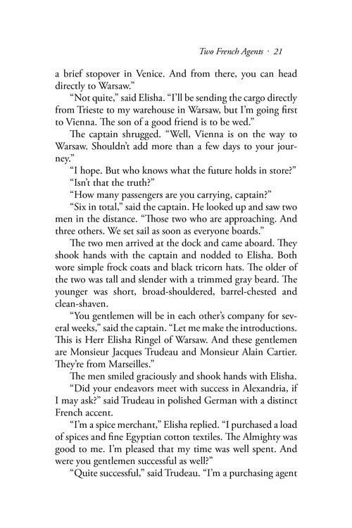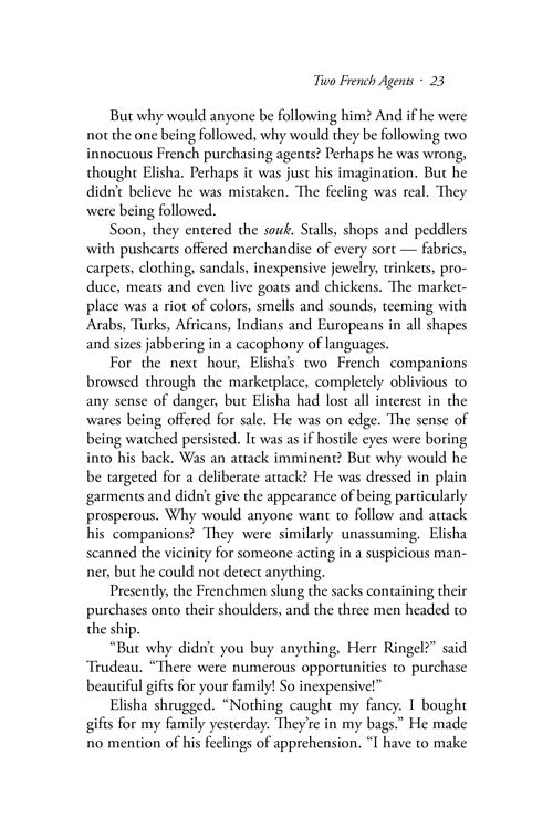Exhilaration turns to desperation. How could such a barbarous thing happen in an age of reason and enlightenment? What could be done to prevent it? Would the prospect of a large payment into the royal coffers be sufficient? Could influence be brought to avert the evil decree? Would the support of other powerful monarchs be effective? And if so, how could it be obtained? A secret envoy would have to be sent to the foreign royal courts, but who should be chosen? Moreover, a group of vicious mercenaries lurks in the shadows, determined to go to any length to thwart the efforts of the community. Who hired these killers? What is their motivation?