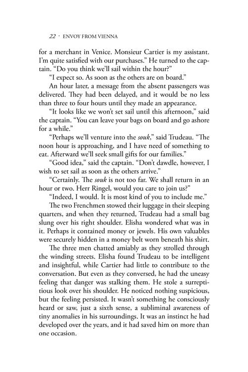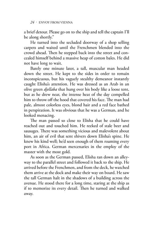 Envoy from Vienna is a work of historical fiction, but the trajectory of the story follows actual historical events. The book is set against the background of shifting political alliances that play an important part in the situation. The book also introduces Rav Gershon Ashkenazi, Chief Rabbi of Austria, the author of Shaalos Uteshuvos Avodas Hagershuni, one of the greatest Torah scholars of his generation.