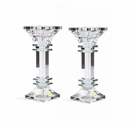 Candlesticks -Crystal With Intricate Gold Design 18cm