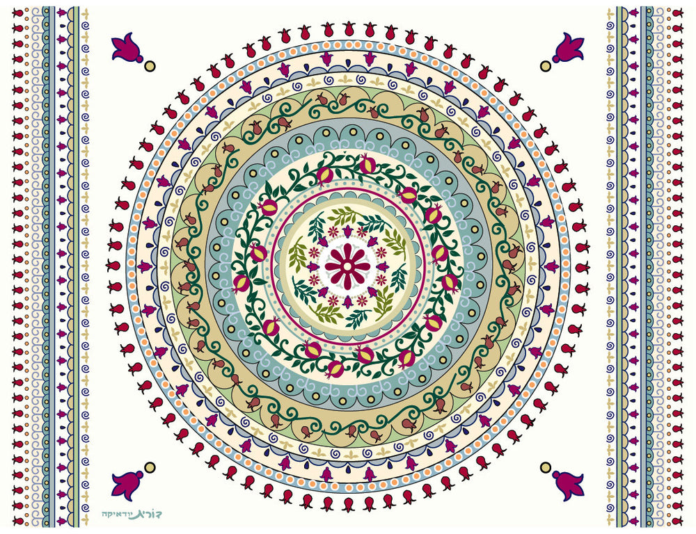 Dorit Judaica: Charger/Placemat-Burgundy & Grey Mandala Pomegranates Circle Design 40cm