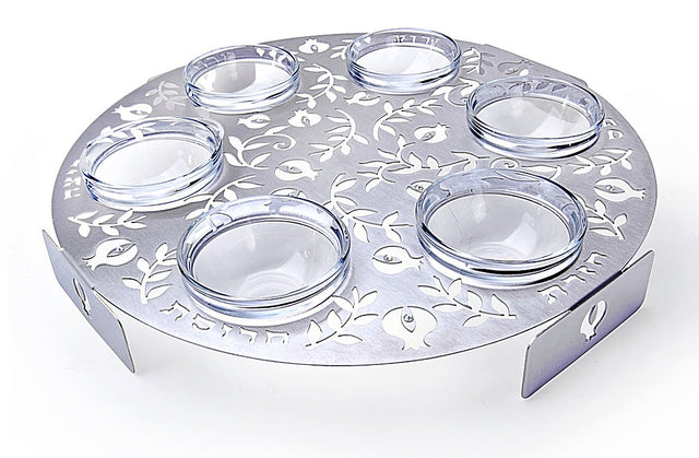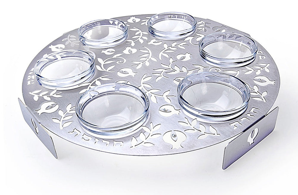 Dorit Judaica:Seder Plate - Stainless Steel with Laser Cut Pomegranate Desig