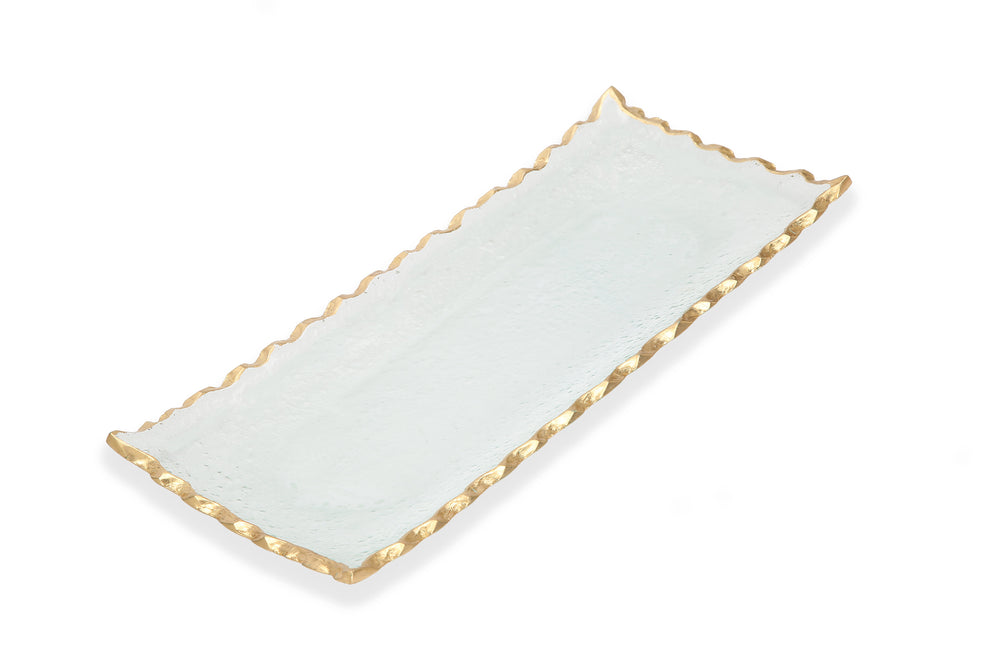 This elegant glass tray serves as an exquisite piece to enhance your Shabbat dining experience. Whether it’s a weekly Shabbat meal or an elegant affair, this tray is designed with a gold glossy rim to add an uplifting feel. It can be filled with miniatures, desserts, or any confectionaries. Dimension: 35.5 cm. Combine it with the matching gold trimmed items for a coordinated look.