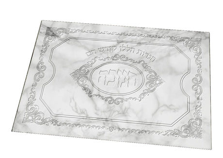 Chanukah Menorah Tray -Tempered Glass -Silver Marble Effect