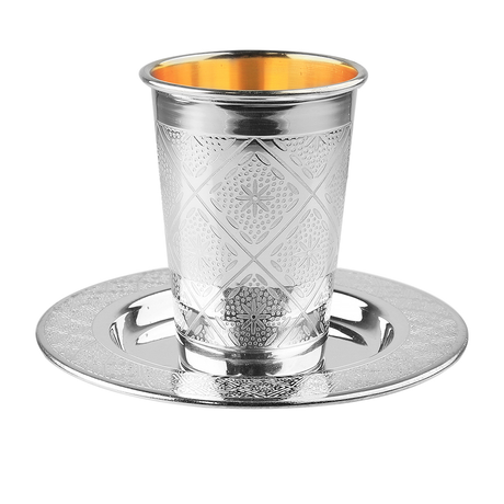 Kiddush Cup and Tray-Silver Coated - Diamond Decoration 165ml