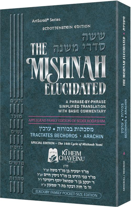 Mishnah Elucidated Seder Kodashim Volume 4 - Bechoros Arachin - Personal Size P/B