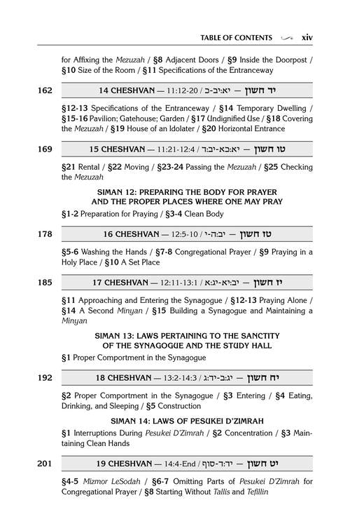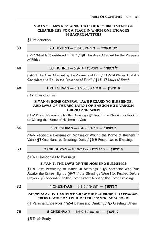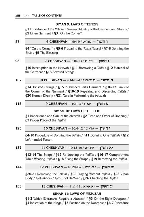 Rearranged for Daily Study Following the Kitzur Shulchan Aruch Yomi Calendar. Since 1864, Rabbi Shlomo Ganzfried's Kitzur Shulchan Aruch has been one of the world's most widely used Halachic guides for daily Jewish living. No work of Halachah has been reprinted so many times in so many countries. This unique edition of Kitzur Shulachan Aruch is organized in accordance with the Kitzur Shulchan Aruch Yomi calendar, and published in 12 separate volumes — one for each month — so that the learner can conveniently carry and study the appropriate volume throughout that month. In addition to the monthly volumes, the set includes a comprehensive 13th volume: a Master Index, which serves as a powerful reference tool, allowing learners to quickly locate and review any topic covered in the entire set. While the program generally follows the order of the simanim in the Kitzur, it occasionally diverges so that the learner studies halachos relevant to the current season. As a result, the sequence is adjusted to ensure that the laws of each festival are learned in advance of that festival. Because the program begins near the end of Tishrei, the simanim studied from the 24th to the 30th of Tishrei both at the end of the Tishrei volume and at the beginning of the Cheshvan volume. The Kleinman Edition Kitzur presents a clear, authoritative, definitive treatment of this classic text, presenting it in the same universally acclaimed format as ArtScroll's Schottenstein Edition of the Talmud. Fully vowelized text of the Kitzur Shulchan Aruch, based on the author's own corrected Lemberg edition of 1884 Crisp, clear translation appropriate for student and scholar alike ArtScroll's trademark phrase-by-phrase elucidation with explanatory notes Original editorial glosses from Rabbi Shlomo Ganzfried Detailed appendices A special major feature that will make this an even more useful Halachic guide: This edition lists important rulings of two of the last century's most widely studied halachic authorities, when they differ from the Kitzur: Mishnah Berurah, the Chafetz Chaim's authoritative commentary on Orach Chaim Igros Moshe, the monumental responsa of the Posek Hador, HaGaon Rav Moshe Feinstein zt"l. With these vitally important additions, The Kleinman Edition of the Kitzur Shulchan Aruch / Code of Jewish Law will be a valuable and useful resource to all.