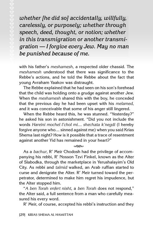 The bedtime Shema, Krias Shema al Hamittah, is an uplifting and comforting guide to ending each day with calm, gratitude, and emunah.
