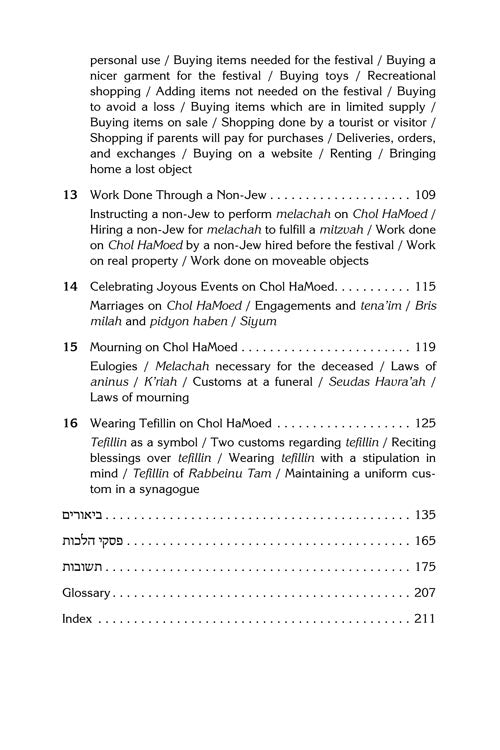 In an age of ever widening interest in contemporary halachah, this work represents the first comprehensive guide to the laws of Chol HaMoed ever published for the English-speaking public. Within these pages, the authors present the laws of Chol HaMoed in a clear, smooth-flowing style with special emphasis on their practical application. Enthusiastically recommended by our leading Torah authorities, this sefer clarifies an important area of halachah which has long been unfamiliar to many.