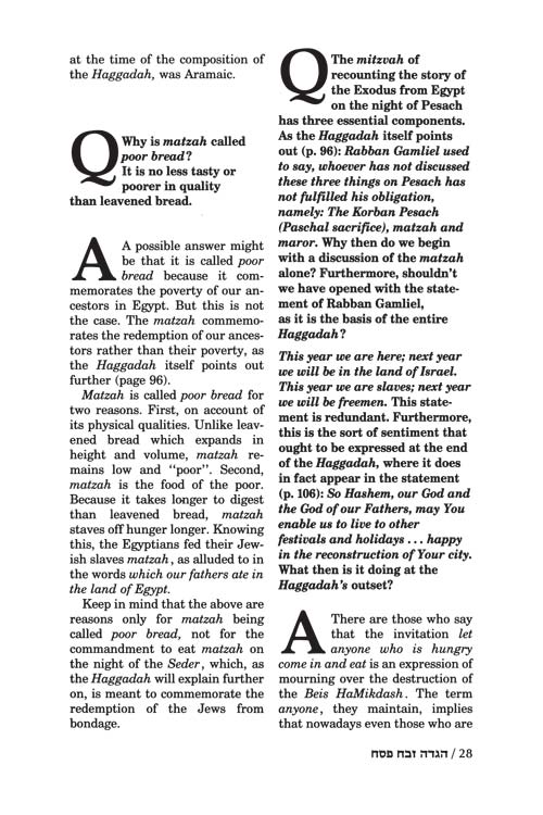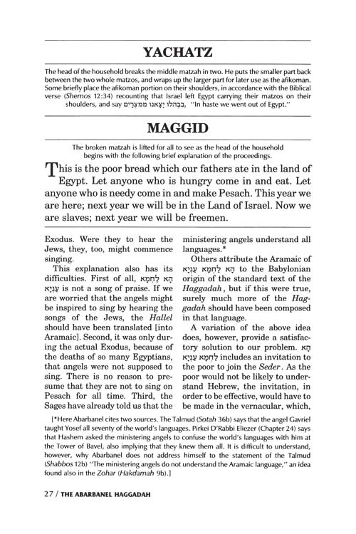 This commentary, adapted from the famous work written by the brilliant fifteenth century scholar, Abarbanel, is in stimulating question and answer form. Abarbanel combines the classic teachings of the Sages with his own penetrating insights, driving home the relevance of the Haggadah for his day and ours.