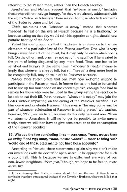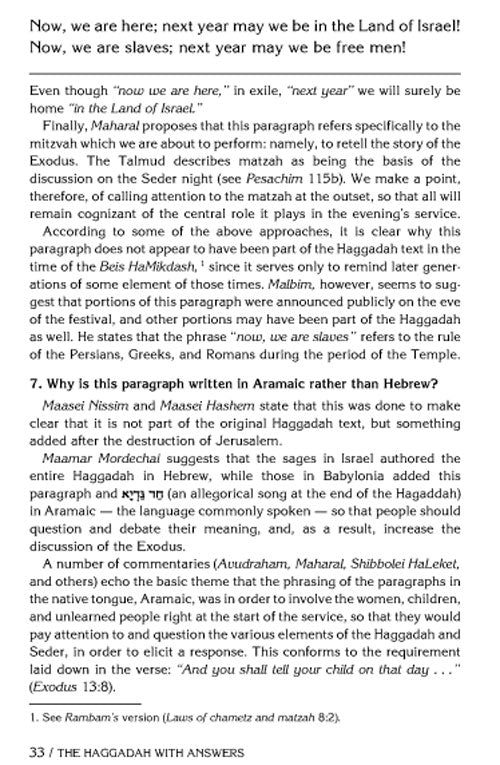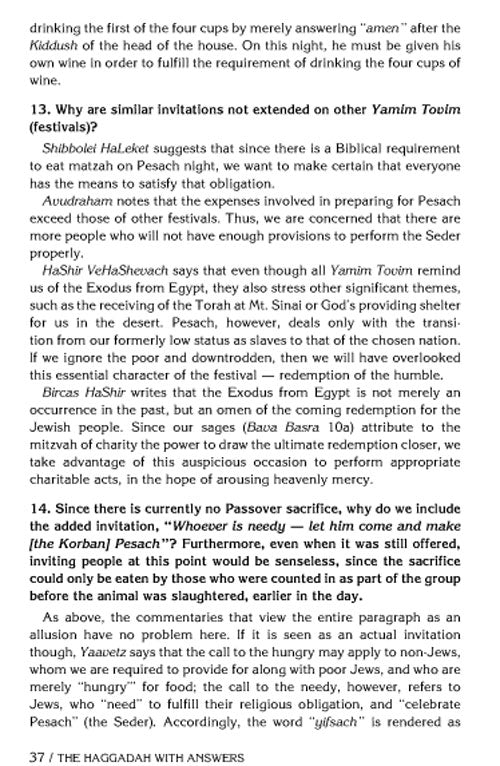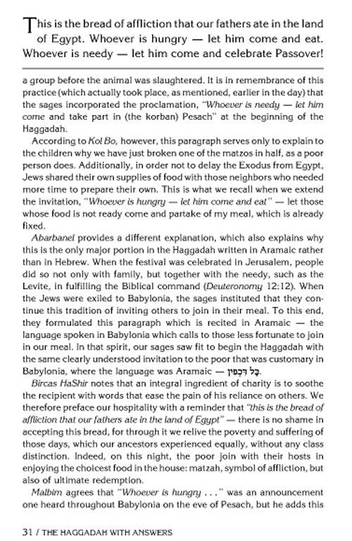 On the night on which the entire liturgy is centered around questions and answers, what more appropriate way to approach the seder than with a Haggadah whose anthologized commentary is presented in question and answer form?
