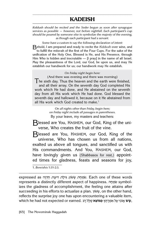 We all know the story of the Exodus, of Yetziyas Mitzrayim. In The Novominsk Haggadah Rav Perlow reveals to us the neshamah, the soul of that story. He examines each word of the Haggadah and creates a brilliant synthesis of machshavah and hashkafah, of Midrashim and commentaries. He shares with us a breathtaking view of the mission and miracle of the Jewish People, and gives us a new and powerful appreciation of what we are celebrating as we sit down to our Seder.