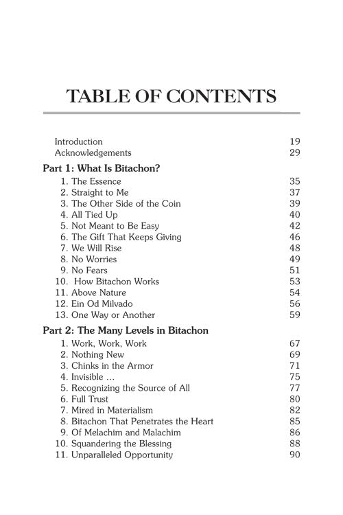 Bitachon. It's so simple. And so complex. And so very, very rewarding. Bitachon is simple: As Rabbi Yitzchak Dwek explains in this absorbing and important book, bitachon means counting on Hashem and knowing that He will come through for you. It's as easy as that. Bitachon is complex. Yet as we navigate life's twists and turns, we wonder: why are things so hard? If Hashem loves me, why doesn't He give me a good job/a fine spouse/ nice kids/success and happiness, and all that other good stuff that I want/need/deserve. Bitachon is rewarding: As we will see through the stories and lessons of A Life of Bitachon, those who incorporate iron-clad bitachon into their lives are guaranteed - that's right, guaranteed!- lives free of worry, anxiety, and anger. In A Life of Bitachon we find answers to so many pressing questions. What is bitachon and how does it work? How does bitachon connect us to Hashem? How can I learn to stop worrying? What's the link between bitachon and happiness? What is the power of "ein od milvado" - there is no power but Hashem? A Life of Bitachon offers us short, readable capsules of Torah wisdom and engaging true stories to strengthen our faith and trust. To give us the priceless gift of bitachon.