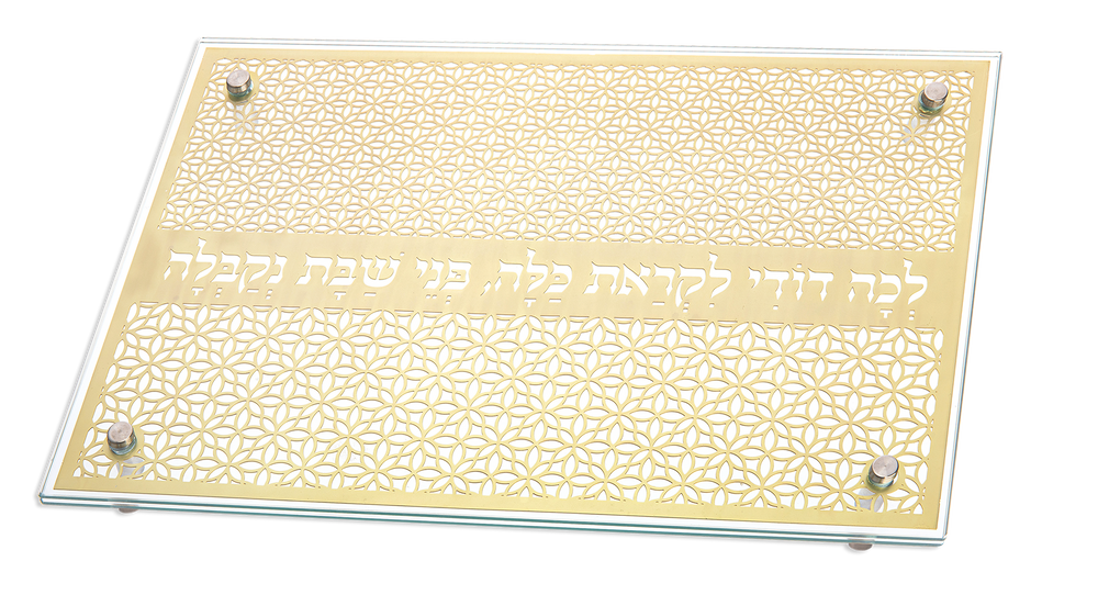 Mashrabiya Shabbat Tray with Lecha Dodi - Gold