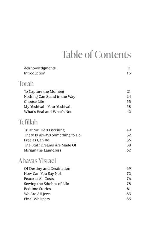 From Morocco to the European ghettoes, from campgrounds to hospital rooms, from Brooklyn to Meah Shearim to Djerba, here are stories that take us around the Jewish world – and into the Jewish People’s hearts.