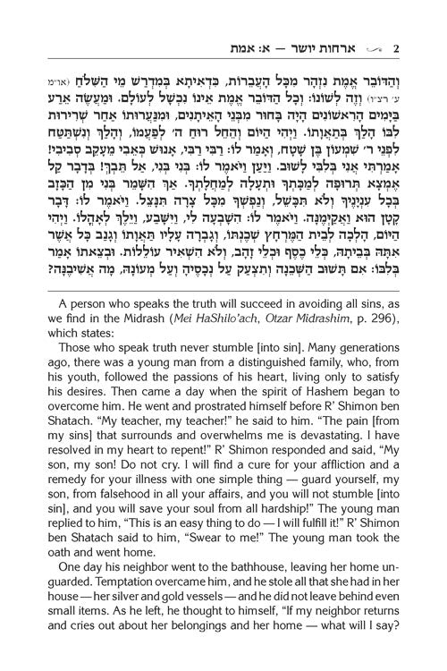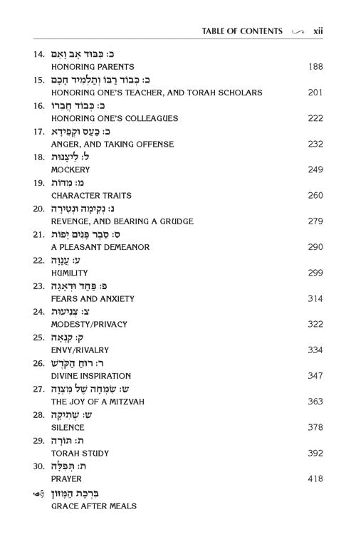 Rav Chaim presents 30 areas of our daily lives and illuminates them with teachings from our Sages, as well as his own wisdom and perspectives. The topics include Torah learning, chessed, honesty, humility, avoiding anger and pride, modesty, and many more.