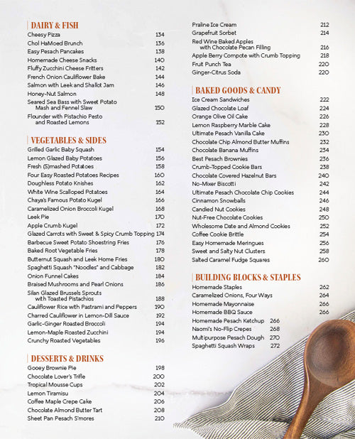 “Homemade Staples” and “Minhag Modification” sections, perfect for those with various food customs