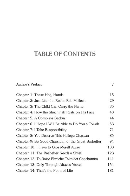 In this book the reader can feel the intensity, the passion, the perfect joy one felt near the Rebbe, the tzaddik of Tosh: in this book, the ahavas Yisroel, the sacrifice, the Torah and tefillah of the Rebbe come alive once again, a ray of light showing us the way forward.