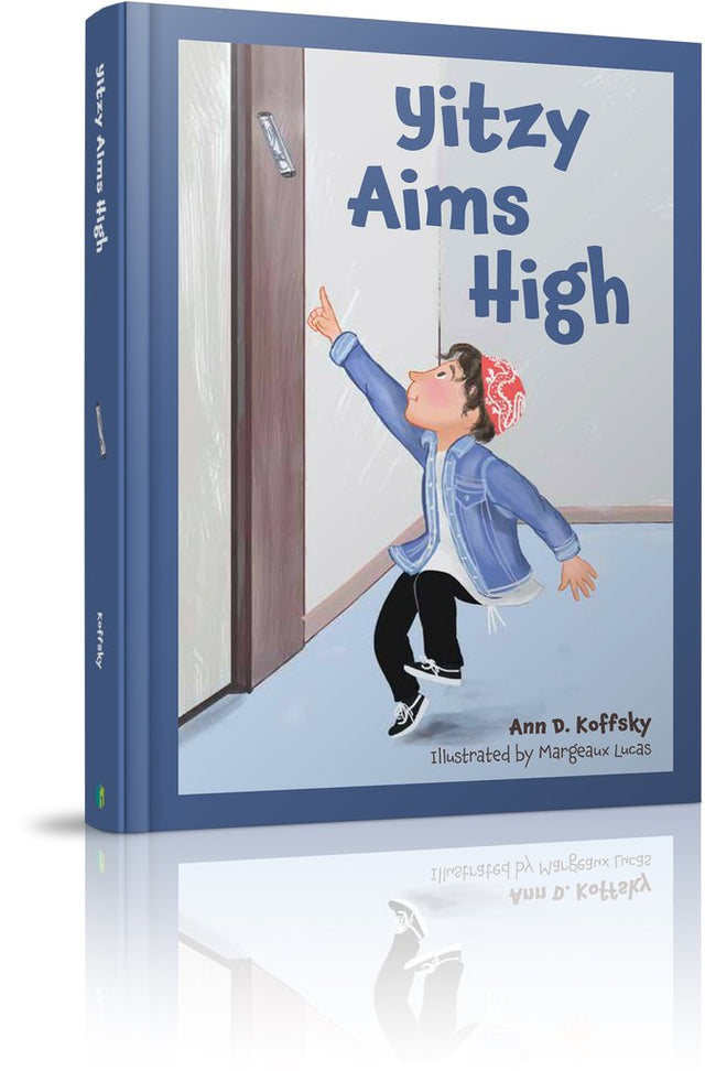 Seven-year-old Yitzy wants to kiss the mezuzah on the doorpost, but it’s way too high.